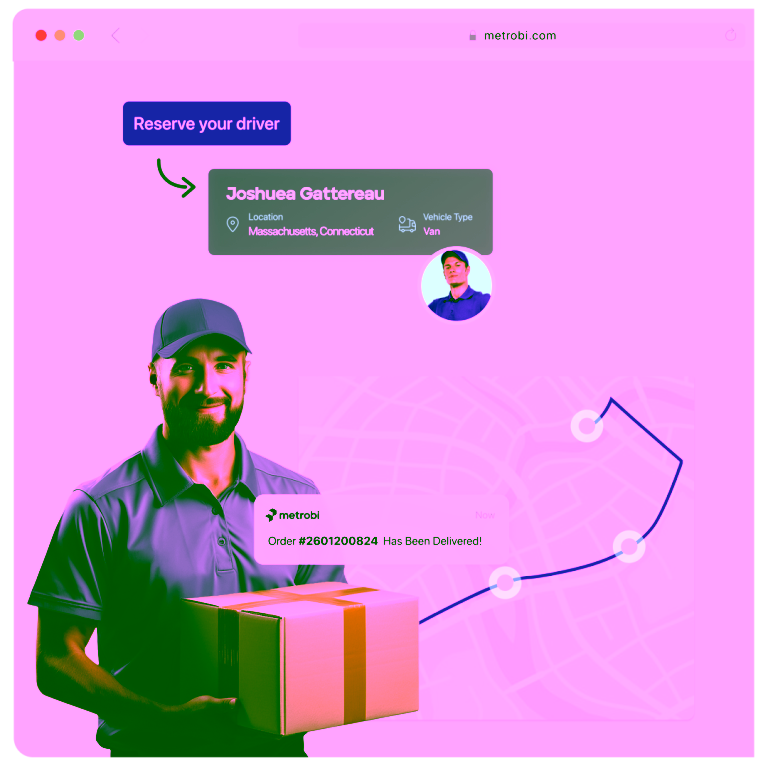 Wholesale deliveries often include heavy boxes and large shipments. Metrobi lets businesses match with drivers using the right vehicle types for every order.